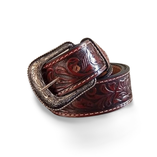 Cinturón con grabado de flores gruías
