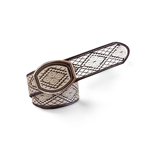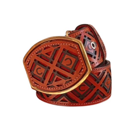 Cinturones de piel de res, grabado de venado con hebilla de metal