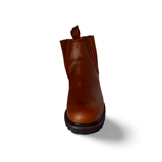 Botines de trabajo de color tabaco con suela ámbar de la marca Astilleros