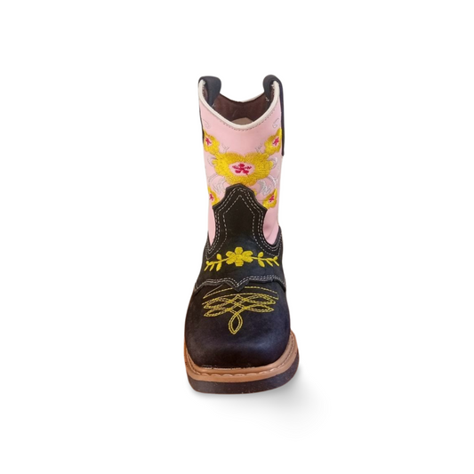 Botas vaqueras para niña negro con flores rojas marca Saino
