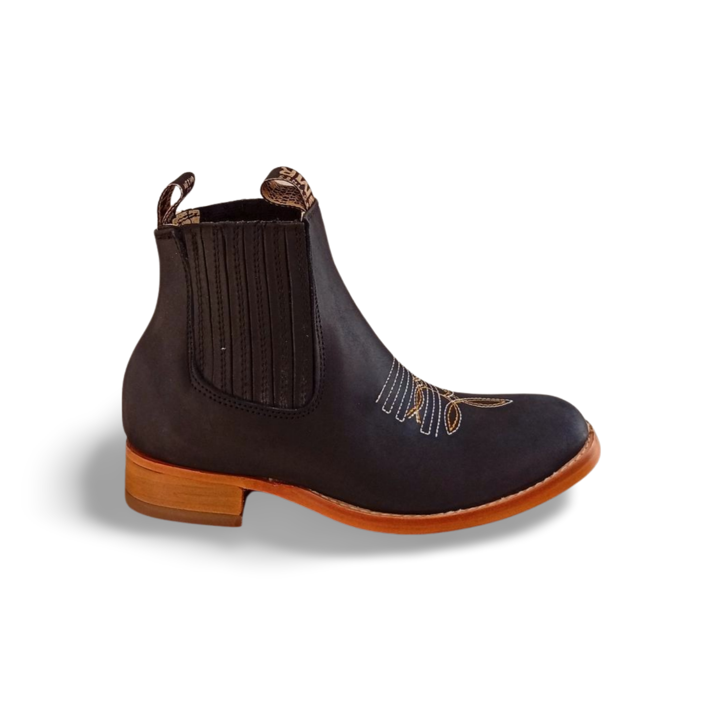 Descubre el poder de un calzado legendario con el Botín Rodeo Modelo 340 de GMR-Arrieros. Diseñado bajo el concepto Cowboy Kids/Junior, este botín es la elección definitiva para quienes buscan la robustez de una bota de trabajo y la agilidad de un botín. Su detalle característico de ringle (argolla) lateral no solo refuerza su estructura, sino que le otorga ese carácter imponente de la auténtica cultura arriera.