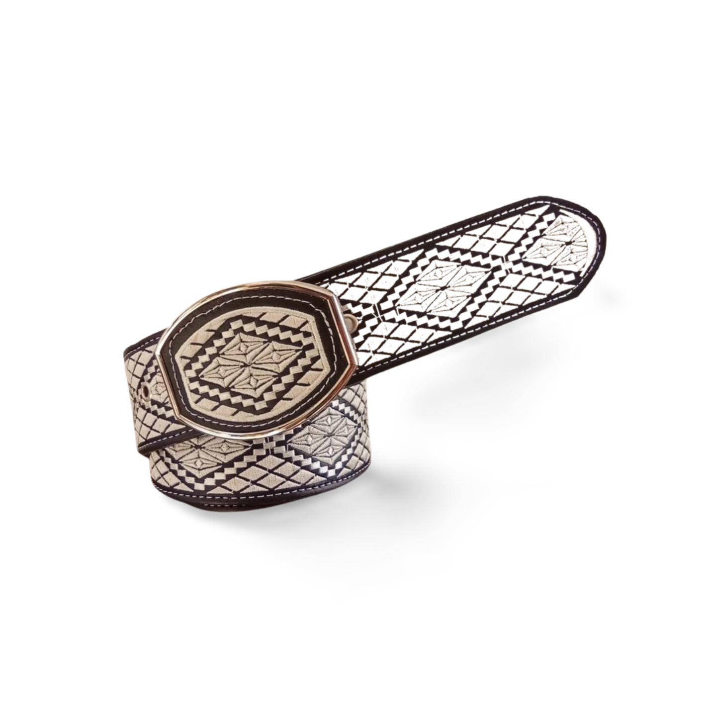 Añade un toque elegante y distintivo a tu estilo con nuestros cinturones de cuero tejidos con hilo plateado. Elaborados con materiales de alta calidad y detalles cuidadosamente trabajados, combinan resistencia, diseño artesanal y un acabado brillante que resalta cualquier outfit. Perfectos para quienes buscan tradición con un toque moderno. Diseños en caracol y rombos.
